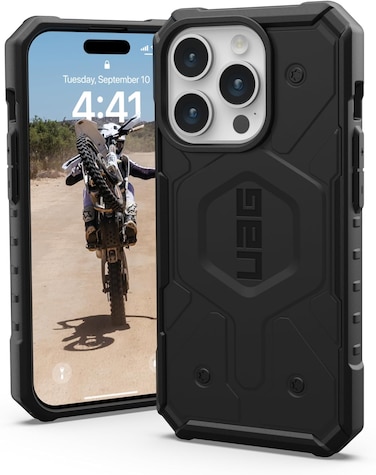 UAG (Urban Armor Gear) Pathfinder MagSafe compatible case for Apple iPhone 15 Pro is the perfect companion for action and adventure. Featuring an ultra-lightweight armor shell, an impact-resistant frame, and a hex pattern core to provide enhanced drop & shock protection to keep your device safe in any situation. The enhanced perimeter raised screen surround ensures that your display remains shielded from accidental drops and impacts, while the TPU bumpers provide added corner protection. With the powerful built-in magnet module, your device securely locks in place, ensuring seamless compatibility with MagSafe accessories and Wireless charging.