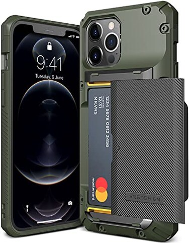VRS Design Damda Glide PRO Case for Apple iPhone 12 Pro MAX lets you access your cards in a flash via a Semi Automatic Sliding Back Compartment that can hold 3 to 4 cards or cash. The Damda Glide PRO allows checkout functionality by storing cards that cannot be digitized. The Worlds first Semi Automatic Sliding mechanism (US Patent 9,661,116 B1) allows you to open the sliding compartment with a single push. The spring hinge mechanism immediately responds with a push, allowing users to access their essentials without difficulty. The card compartment with a recessed slot makes it easy to lift your cards when you need them.