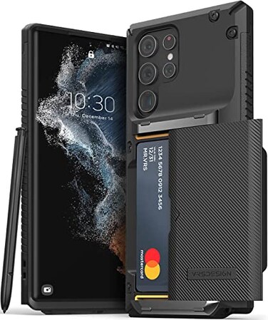 VRS Design Damda Glide PRO Case for Samsung Galaxy S22 ULTRA lets you access your cards in a flash via a Semi Automatic Sliding Back Compartment that can hold 3 to 4 cards or cash. The Damda Glide PRO allows checkout functionality by storing cards that cannot be digitized. The Worlds first Semi Automatic Sliding mechanism (US Patent 9,661,116 B1) allows you to open the sliding compartment with a single push. The spring hinge mechanism immediately responds with a push, allowing users to access their essentials without difficulty. The card compartment with a recessed slot makes it easy to lift your cards when you need them.