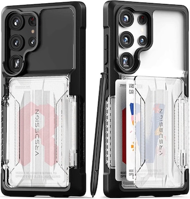 VRS Design Neo Flip Active case for Samsung Galaxy S23 ULTRA lets you access your cards in a flash via an innovative Snap Open and Close mechanism door to access a compartment that can hold 2 cards or cash.