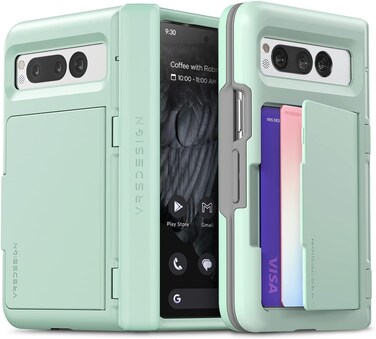 VRS Design Terra Guard Modern GO, Hinge Protection, Designed For Google Pixel Fold Case Cover Wallet With, 2 Card Holder Compartment - Marine Green