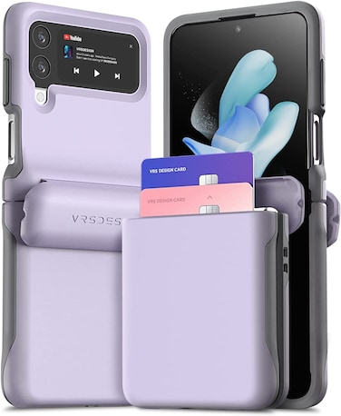 VRS Design Terra Guard Modern GO, Hinge Protection, Designed For Samsung Galaxy Z Flip 4 Case Cover Wallet With 2 Card Holder Slot - Purple