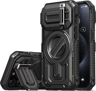 VRS Design Terra Guard Ultimate for iPhone 15 PRO case cover [MagSafe compatible] with Camera lens Protector Kickstand - Black