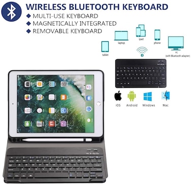 - <p>Convenient Compatible Apple iPad 7th Generation Keyboard Case - Ultra-slim Wireless Keyboard Case for Apple iPad 10.2" 7th Generation 2019 Release(Please checked the model number A2197 A2198 A2200 at the back of the iPad); All in One Design: Wireless Keyboard + Stand + Carrying Case, stylish and convenient, perfect for daily use and travel Please NOTE that the case would NOT fit other iPad models.<p>Wireless BlueTooth iPad 10.2 Case with Keyboard - Super slim design adds maximum protection with minimal bulk (0.38 in) provide you with a smooth and comfortable typing experience. The bottom of the keyboard is magnetically designed for easy removal and makes your iPad more stable. Adjustable stand securely holds your iPad in landscape mode. Wireless keyboard is available. Our iPad 10.2 keyboard case lasts over 100 hours (30-day standby time)!<p>Infinite Viewing Flip iPad 7th Generation 2019 Keyboard Case - The modular design features a removable keyboard that transforms your iPad into a laptop or your favorite book in less than a second. In laptop mode, the thoughtful design easily adjusts to whatever comfortable angle suits you best. Perfect for working, writing, or watching videos at work, school, travel, and home.<p>iPad 7t Gen 10.2 2019 Auto Wake and Sleep Keyboard Case - Auto sleep / wake protects and conserves battery life while the durable polycarbonate shell with impact-resistant corners and reinforced hinge protects the rest. All the retina display are further protected by durable, 10,000,000 stroke-certified keys.<p>Color:Black<p>YMH, a quality product within your reach!<p> Keyboard Case for Apple iPad 10.2" 7th Generation 2019 - Slim Fit PU Leather Stand Cover with Premium Quality All- ABS Hard Material Removable Wireless Long Life Battery Bluetooth Keyboard.<p> Compatibility:<p> This case is compatible with Apple iPad 10.2" 7th Generation 2019 Release(model number: A2197 A2198 A2200) Only.Not for Other device.<p> Material :<p> Plastic keyboard+ PU case<p> Feature:<p> 1. Auto Sleep/wake & Super Long Battery Life 2. Connected by bluetooth3.0<p> 3. Working distance:10m<p> 4. Easy to use and looks great.<p> 5. Good touch feeling.<p> 6. Quiet keystrokes.<p> 7. Built-in rechargeable keyboard battery and USB charging cable included<p> 8. With plastic Detachable keyboard<p> 9. Synthethic leather case<p> Package Include:<p> 1* Keyboard Case for Apple iPad 10.2" 7th Generation 2019 <p> PLEASE NOTE: Colors shown in pictures may slightly differ from actual product due to lighting and color settings. <p> HOW TO CONTACT SELLER?<p> Step 1: log into your amazon account;<p> Step 2: Find the order number;<p> Step 3: Click the seller nickname, This will display the seller's storefront;<p> Step 4: Now follow the instruction and click "Ask a question" you may have concerning the product.<p> We provide warranties for our products. If for any reason you are not satisfied with any product by YMH, please do not hesitate to contact us, we will do our best to resolve your issue quickly and efficiently!