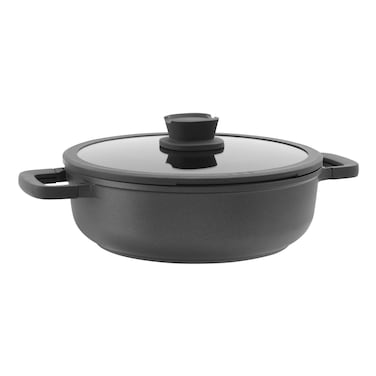 Featuring a durable non-stick coating, this saute pan is easy to clean and maintain. The double handles make it easy to move the pan from the stovetop to the table, while the included lid helps to lock in moisture and flavours during cooking.