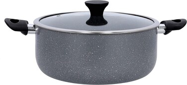 Delcasa DC1902 28 cm Granite Coated Casserole with Glass Lid -Grey