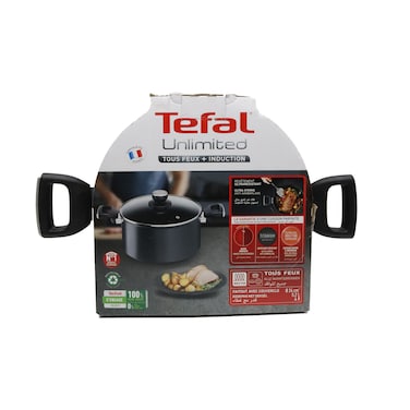 The Tefal Unlimited Casserole With Lid G2554672 in Black is a versatile and stylish addition to any kitchen.