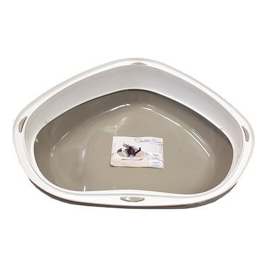 - This large corner litter box with rim is practical