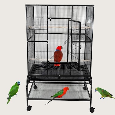 Bird Cage, Black Cage, Modern & Strong cage, Parrot Cage, Birds Home, Entertaining cage, Food Containers, Beautiful design, Indoor use, Easy to Assemble, Black color cage, 136 cm height