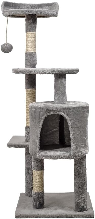 Imagine a cozy hideaway for your furry friend, a place where they can curl up for a nap or stretch out for a leisurely snooze. Our Cat Tree Scratching Tower with a soft fabric condo is just that-a comfy retreat for your cat to call their own. This tower is more than just a place to rest; it's a whole adventure waiting to be explored! With multiple levels to climb and perch on, your cat will have endless opportunities for play and exploration. And don't forget about the sisal scratching posts perfect for keeping your cat's claws healthy and happy.But that's not all! Our Cat Tree Scratching Tower also features fun toys like dangling balls and ropes to keep your cat entertained for hours on end. It's like having a mini playground right in your living room! Plus, our tower is built to last, so you can trust that it will stand up to even the most kitties. And assembly is a breeze, so you can set it up in no time and start enjoying quality time with your furry friend. Give your cat the ultimate hangout spot with our Cat Tree Scratching Tower. They'll love having their own cozy condo to relax in, and you'll love watching them play and explore to their heart's content.