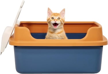 Cats litter box semi-enclosed with litter scoop, Portable and detachable cat toilet increase in depth prevent splashing, Easy cleaning suitable for medium large cats (Blue Color) 48 cm L