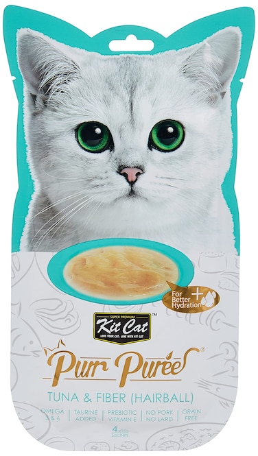 Kit Cat Purr Puree Tuna & Fiber"Hairball" Wet Cat Treat Tubes 4X15G