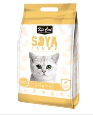 </b><li>Kit Cat SOYA CLUMP is 100% biodegradable soy-based cat litter with mild aroma. This unique product is made from the insoluble parts of a soybean which is found in soymilk production. Normally these insoluble parts are mainly disposed in a landfill, but Kit Cat innovates a second purpose for this ‘wasted’ material to be used as cat litter, labeling us as Eco-Friendly.<li>This cat litter works as an excellent liquid absorbent as it can take up moisture up to 3 times more compared to traditional clay litters/crystal litter. With an instant clumping formula, it clumps upon in contact with fluid.<li>SOYA CLUMP is flushable, light and easy to scoop; its fast absorption rate protects your cat and litter tray from toxic ammonia and urine odour. Our cat litter is produced with food grade natural soybean which contains no synthetic chemicals or dyes and making it safe for kittens, cats and yourself.<li>Quick Clumping<li>Forms scoopable clumps after use. Do Not Stick To The Cat Litter Box<li>Virtually 99.9% Dust Free<li>So you will avoid breathing in or cleaning up dust<li>Non Toxic & 100% Safe<li>No chemical added & safe for kittens, cats or humans<li>Eco Friendly<li>Made from natural biodegradable soybean<li>Scoop & Flush<li>Safe to flush in small quantities<li>Odour Control<li>Effectively removes odour within 5 Minutes<li>Suitable For All Life Stages<li>Kittens, adults & senior cats<li>Soft & Gentle on Paw<li>Perfect for cats with sensitive paws<li>No Tracking<li>Lesser mess & paw friendly<li>How To Use<li>Step 1: Fill your litter pan with a minimum depth of 5 cm (2 inches) of Kit Cat Soya Cump.<li>Step 2: The portion used by pets, absorbs urine and clumps instantly, trapping odour as well. Soya Clump.<li>Step 3: Remove the clumped portion and replenish with the same amount.<li>Step 4: Flushed down clump portion into the toilet or used as fertilizer.