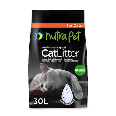 Nutrapet Designed in the United States of America now launches its line of Silica Gel Cat litter. Available in three sizes, 3.8 L, 7.6L and 16L AND NOW 30L.This product comes with superior absorption, advanced odor control, convenient and easy to use, less tracking and lastly environmental friendly.ADVANTAGES OF CRYSTALS CAT LITTER-no clumping action- more eco briendly because it naturally bio-degradable- this litter tends to be a bit tidier with less mess- when it comes to fighting odor, crystals cat litter does a good job absorbing the odor and masking the undesirable odor of cat urine- unlike many litters, you only to to completely replace this litter approximately once every month- if you have allergies or just want less dust in the house, you will like crystals cat litter- the manufacturer even says you can flush the litter down your toilet- at a time when it seems like everything around us is toxic to our health, crystals are said to be non-toxic