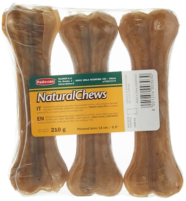 Padovan Natural Chews Bone Pressed Dog bone 14 cm - 3 pcs, Brown