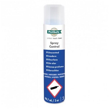<li></b>Our Unscented Spray Refill works with all PetSafe spray products including spray bark control and spray remote trainers.<li>To refill the collar, make sure the unit is turned off. Hold the spray can upright and firmly press the nozzle down into the refill port. Hold for 15 seconds and remove. If spray leaks out, you may need to press harder to complete the seal.
