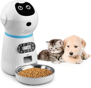 Rubik 3.5L Automatic Cat Dog Feeder, Auto Robotics Food Dispenser with 4 Meals Time Setting, 10s Voice Recording, LCD Display & Portion Control for Pets & Small Animals