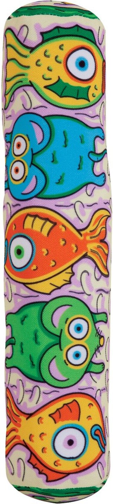 Let your kitty get her kicks with the Kitty Kickz cat toy from Fat Cat. Designed especially for bunny-kicking and wrestling, this long goldfish roll can be tossed, batted and pawed from noon to naptime. That's because the inside is loaded with USA-grown Zoom! Around the Room organic catnip. Your favorite feline is in for some-fin new with this toy, which is made from durable canvas that's sturdy enough to stand up to those goal-scoring kicks, but also soft enough to cuddle when playtime is over.
