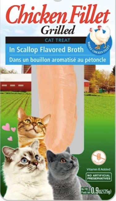 Treat your kitty to a taste sensation with Inaba Grilled Fillets! These delectably moist and tender fillets will have your kitty purring with affection! Made from high-quality responsibly farmed chicken that is bursting with protein! Each fillet is grilled and packaged in a tasty seafood broth, providing your cat with extra hydration! Make your bonding time with your feline friend extra special with these fillets! Product of Thailand. No Grains or Artificial Additives. Picked by the Pet Beastro to spoil your kitty!