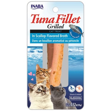 - Inaba Ciao Grilled Tuna Fillet is an all natural cat treat made from hand-cut portions of responsible harvested tuna that has been lightly grilled and packed in savory scallop broth for an irresistible taste your cat will love! Product of Thailand. Benefits: High in moisture to provide vital hydration cats need Added vitamins Vacuum packed for freshness Spend quality time with your kitty - feed these tender treats by hand or simply place a tasty portion in a bowl Contains no grains, artificial preservatives or flavors Great for dogs, too!