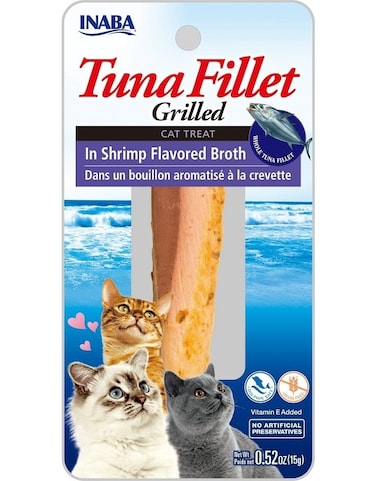 - Made from hand-cut portions of responsibly harvested tuna, these grain free fillets are lightly grilled and packed in a savory seafood broth. Available in seven enticing varieties, they are high in moisture felines need for health. You can spend quality time with your furry best friend by feeding these tender fillets by hand, or simply place a tasty portion in a bowl. ・Hand-cut, lightly grilled and packed in a savory seafood broth ・Designed for feeding by hand ・No grains, preservatives or artificial colors ・High in moisture cats need for general health ・Low in calories ・Innovative UV-blocking packaging film ・Vacuum packed for freshness INGREDIENTS Tuna, Natural Shrimp Flavored Broth, Vitamin E Supplement, Green Tea Extract. GUARANTEED ANALYSIS Crude Protein (min) 26.50% Crude Fat (min) 0.80% Crude Fiber (max) 0.50% Moisture (max) 71.00% Vitamin E (min) 14 IU/kg