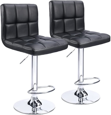 Bar Stools Modern PU Leather Adjustable Swivel Barstools, Armless Hydraulic Kitchen Counter Bar Stool Synthetic Leather Extra Height Square Island Barstool with Back Set of 2(Black)