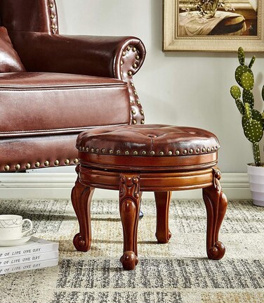 Foot Stool Round Ottoman Mid Century Foot Rest Cushion for Living Room