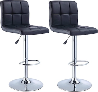 Karnak Bar Stool Chair PU Leather & Stainless-Steel Base Adjustable Height, 360 Swivel Black. The short back design provides strong support for the waist to reduce the pressure on the lumbar spine, which is comfortable and more concerned about your health. Adjust the lifting function, quality upgrade, durable, textured metal handle. The footrest is beautiful and durable, giving your feet a comfortable foothold. Tip: We have various styles of bar stools and decorative chairs 360 Swivel seat is convenient for seated individual chatting or social contacting at the bar in any direction. Comes with an air-lift handle to adjust the height depending on different demands, like a classic bar stool, these seats feature a hydraulic lever for adjusting height so you can comfortably transition as needed, Modern Style & Multifunction, Bar chairs has a perfect shape to fit in any environment in your house. It can be used in kitchen, dining room, living room, balcony, coffee shop, counter, barbershop, pub etc. Durable and Study elegant pub stools with strong framework and Pedal which use metal plating process.