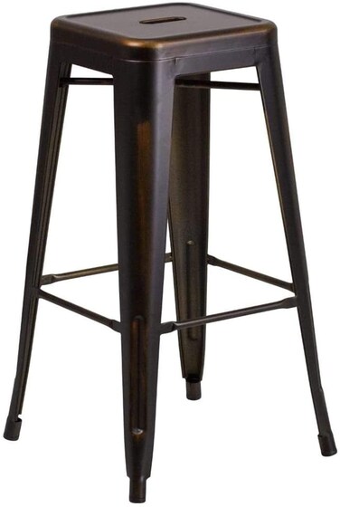 LANNY 75cm High Antique Metal Indoor-Outdoor Barstool High Chair D7 BRONZE with Square Seat