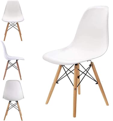 LANNY Set of 4 Eames Dining Chair 1618 Plastic Wood Retro Modern Furniture for Living Room, Desk, Patio, Terrace, Office, Kitchen, Lounging, Cafeterias & More (White)