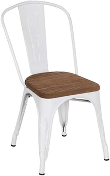 LANNY Tolix Style Dining Chairs D1 WHITE Industrial Metal Stackable Cafe Side Chair Solid Wood Seat Set of 4