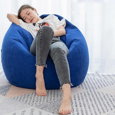 Vital Bean Bag Chair, Classic Round Linen Cloth Bean Bag With Polystyrene Beads Filling