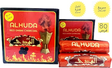 - Huda Red Omani Charcoal Quick ignite for Bakhoor Charcoal,Long lasting Charcoal for Hooka and Sheesha,Red Omani Charcoal is Premium quality Charcoal,Huda Red Omani Charcoal Quick Flame and Long lasting for Bakhoor ,ORGANIC: Only natural ingredients are used. Charcoal made of ,HEALTH: Shisha charcoal with absolutely no chemical additives ,SPECS: Charcoal with enough heat to last for more than 1 hour; no unpleasant smell or taste; small amount of ash remains; packaging - 80 Tablets