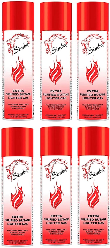 AL SAQER-Simba Gas-Butane Gas 6 Pcs Purified Lighter Gas - 139g - 250ml - Lighter Gas Refiller Catridge