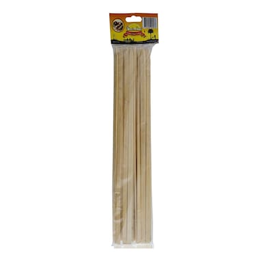 These skewers are 40cm in length and come in a pack of 25. They are made of durable beige material that is perfect for holding and cooking chicken pieces.