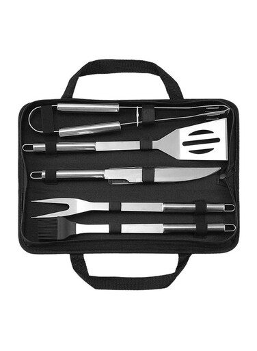 Generic 5-Piece Stainless Steel BBQ Grill Tool Set Silver/Black