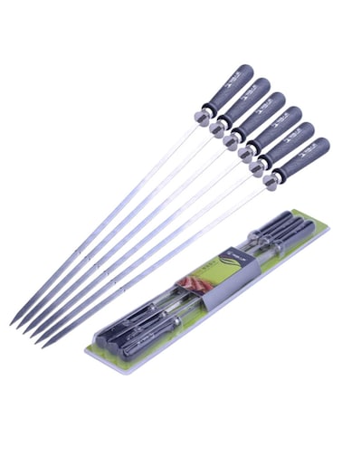 Generic 6-Piece BBQ Grill Skewer Set Silver/Black