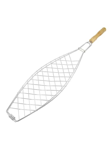 - <p>Meticulously designed barbecue grill plate folder is ideal to roast or grill fish<p>Decked with a wooden handle to enable easy turning<p>Intricately moulded to prevent the food from falling while roasting or grilling