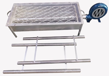 GO2CAMPS BBQ GRILL WITH FAN LONG LEGS-ADJUSTABLE STAND WITH HAND USEBLOWER FAN 90 CM-LARGE-GALVA BBQ GRILL