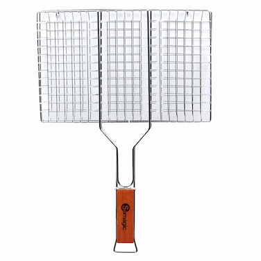 - The grid is easy to clean thanks to the non-stick finish and comes with a wooden handle for cool handling
