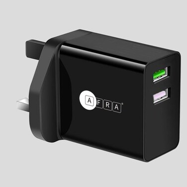 AFRA USB Wall Charger, 18 W, 2.4A Charging Speed, Dual Ports, USB A, Fast Charging, Light, Overheat And Short Circuit Protection, Compact Design