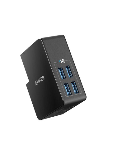 Anker - 4-Port Usb Plug Adapter With Uk And Eu Black