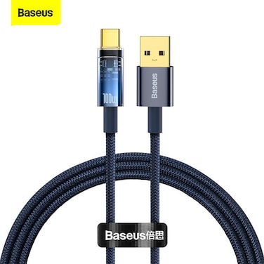 Baseus 100W USB To Type-C Explorer Series Auto Power-Off Fast Charging Data Cable for Huawei, Honor, Xiaomi and all Type C Devices 6A,1m, Blue