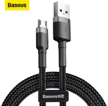 Baseus Cafule Micro USB Cable Nylon Braided Fast Quick Charger Cable USB to Micro USB 2.4A Android Charging Cord compatible for Galaxy S7 S6, Note, LG, Nexus, Nokia, PS4, 1m Black/Grey