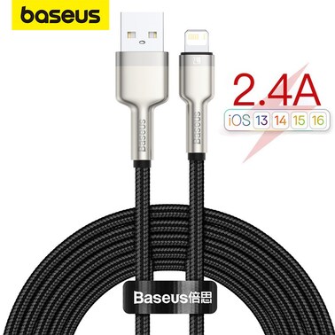 Baseus Data Transfer Cable Cafule Series Braided Nylon 2.4A for iPhone 14 Pro/14 Pro Max, 13 Pro/13 Pro Max/13/13 mini, iPad 9, 12 mini/12/12 Pro and More 2M Black