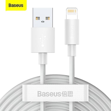Baseus Lightning Cable 2 Pack of 1.5m for iPhone USB Cable, USB A to Lightning Cord Compatible with iPhone 14/13/12/11/10/XS/X /8/7 /6 iPad and More – White