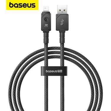 o Baseus USB/Lightning 2.4 A fast charging cable, 1 m (black) o The Baseus brand cable was created with Apple device users in mind. Thanks to a smart chip, it allows fast charging with an intensity of up to 2.4 A. It also allows data transmission at 480 Mbps. The product is distinguished by its original design, and its length is 1 m, • Careful workmanship • The design of the Baseus cable uses aramid braided fiber, which is used in the military and aerospace industries. This makes the product extremely durable and resistant to mechanical damage. It also successfully passed a number of tests.