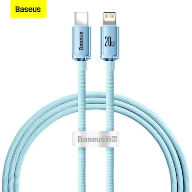 Baseus USB-C to Lightning Cable, for iPhone Fast Charger 20W, Braided Nylon Lightning Cable Compatible with iPhone 14/14 Pro Max/14 Pro/13/12/11, iPad, Airpods (1.2m) - Blue