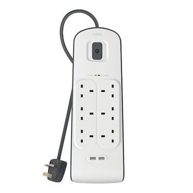 Keep your electronic devices protected from dangerous power surges and spikes with the Belkin 6-Outlet Surge Protection Strip with 2 USB Ports. Simply plug the surge protection strip into any AC wall outlet and connect up to six AC and two USB devices to keep them safe from power surges, lightning strikes, and AC contamination. Ideal for laptops, DVD players, gaming consoles, speakers, and other medium-sized electronics, the Belkin Surge Protection Strip is made with high-quality circuitry and premium absorptive materials to protect your devices and data.