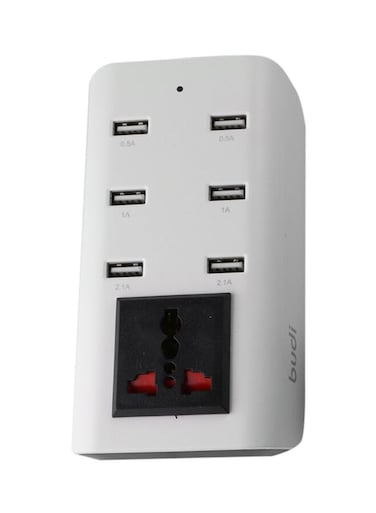 Budi Portable Adapter With 6-USB Ports White